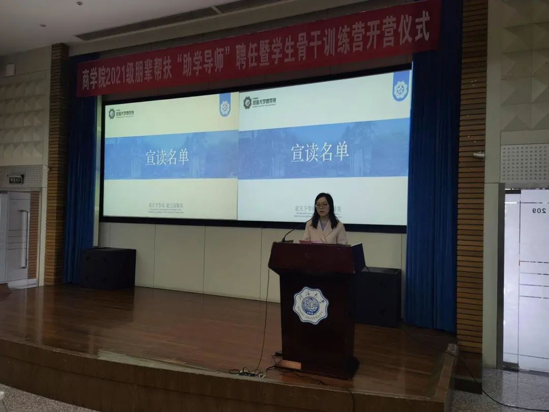 活动第二项议程,学院团委书记陈璐老师宣读21级朋辈帮扶“助学导师”名单。