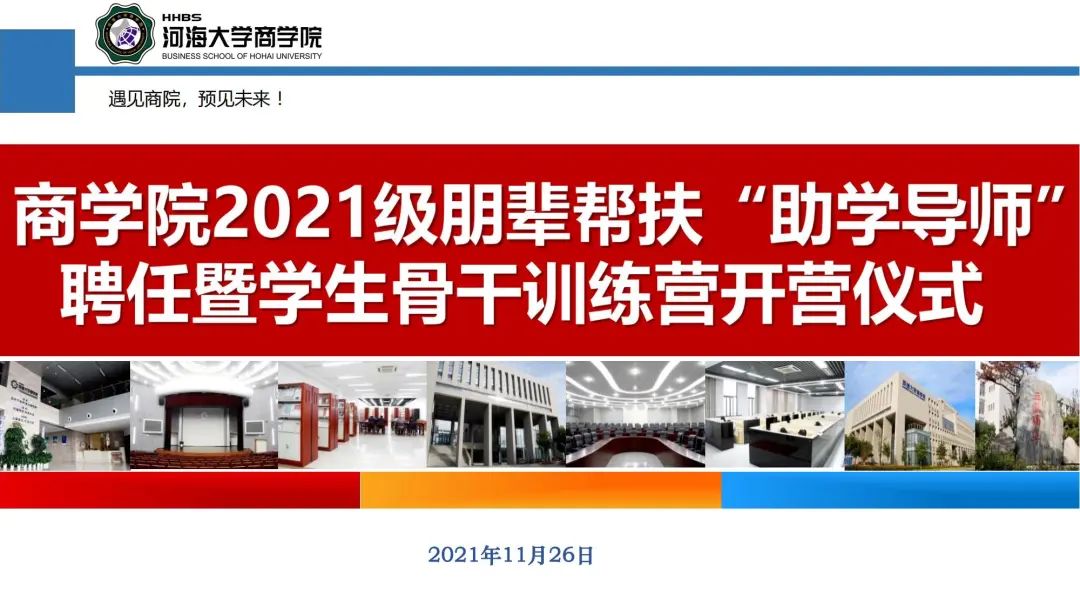 11月26日,77779193永利官网在江宁会议中心举办2021级朋辈帮扶“助学导师”聘任暨学生骨干训练营开营仪式。学院党委副书记戴媛媛老师,团委书记陈璐老师,21级辅导员陈鹏老师、魏俊美老师,21级全体助学导师、学生骨干和积极分子参加了此次活动。活动由魏俊美老师主持。