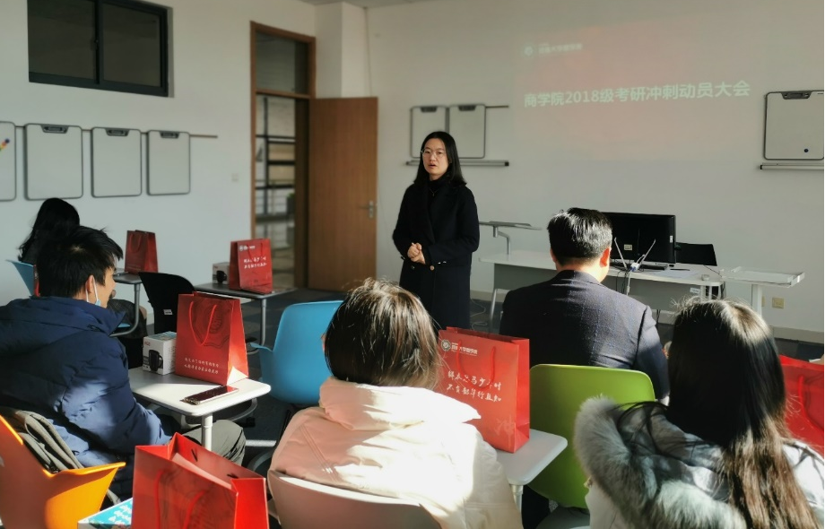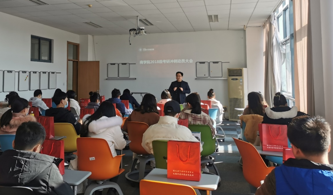 “研”出必行,一战成“硕”,为进一步鼓舞考研学生士气,助力考研学生勇创佳绩,12月3日,77779193永利官网于博学楼辅楼A407召开2018级考研冲刺动员大会。学院副院长田贵良、党委副书记戴媛媛、2018级辅导员王晓莹、史玉莹以及2018级考研本科生参加本次动员大会。动员会旨在为同学们加油鼓气、并送上学院精心准备的小礼物,祝愿同学们金榜题名。