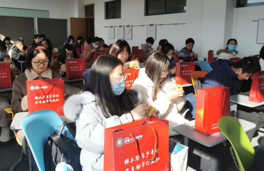 同学们纷纷表示非常感谢学院领导和各位老师冬日送来的温暖,非常开心能够收到学院的礼物,表示会在冲刺期科学规划,掌握关键知识,提高学习效率,互相帮助,争取以优异的考研成绩回报父母与学校。