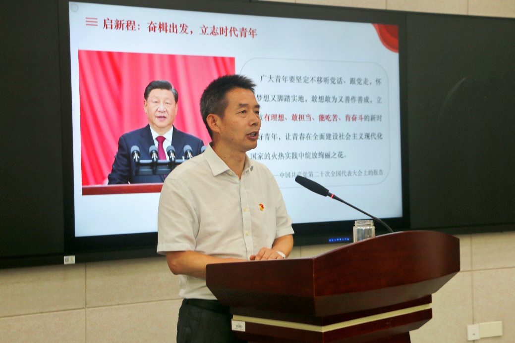 吴宝海书记结合学习贯彻党的二十大精神和习近平总书记在主题教育工作会议上的重要讲话精神,带领学生党员深入学习了习近平总书记关于青年工作的重要论述,号召学生党员凝心铸魂,深入学习党的创新理论,夯实信仰根基。同时,他带领学生党员重温了河海大学的红色校史,通过优秀校友的事迹勉励学生党员秉承禹志,在新的人生阶段继续向下扎根,向上生长。他希望学生党员们立志成为有理想、敢担当、能吃苦、肯奋斗的新时代青年,在全面建设社会主义现代化国家的火热实践中绽放绚丽之花。