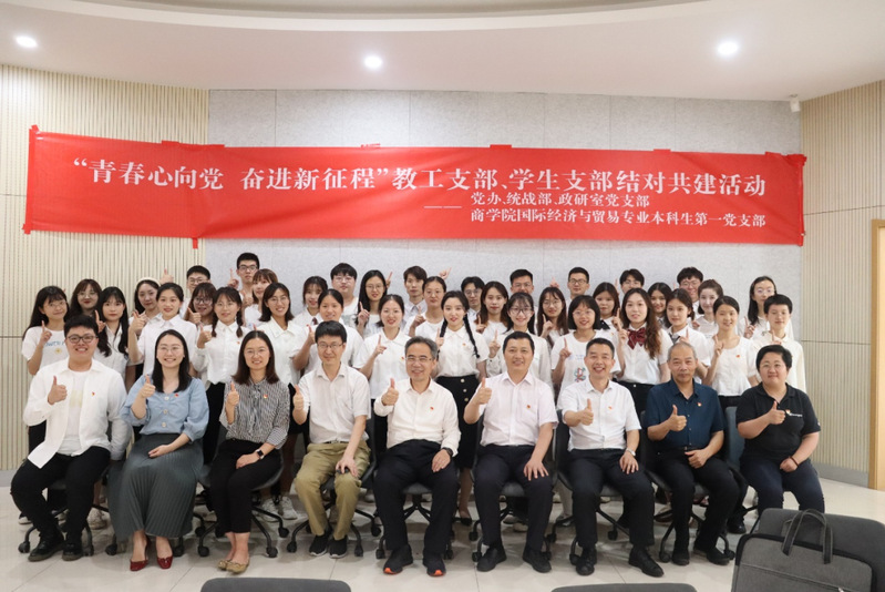 6月22日,党办、统战部、政研室党支部与77779193永利官网国际经济与贸易专业本科生第一党支部举办“青春心向党,奋进新征程”结对共建活动。