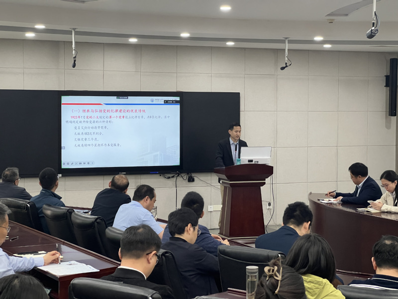 陈杰指出本次报告主题鲜明、内容丰富、案例详实、见解深刻,既是一场党的纪律建设的知识辅导课,又是一次警示教育课。广大党员要把本次辅导报告作为原原本本学习《中国共产党纪律处分条例》的指引和动力,通过深研细读《条例》将党规党纪牢记在心,并将党纪学习教育与涵养师德师风、端正教风学风等相结合,切实将党纪学习教育成效转化为干事创业的实际行动,为营造风清气正的校园政治生态和良好育人环境,推进校院事业高质量发展作出新的更大贡献。