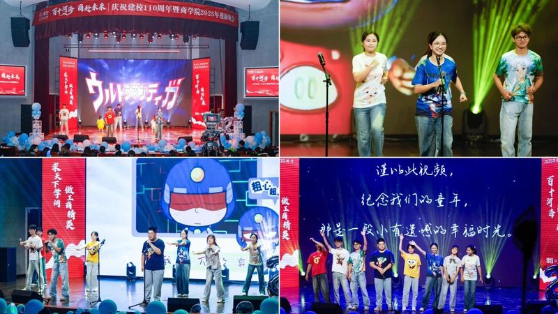 晚会分为“入海·涓流汇聚”、“激荡·奋楫逐光”、“奔涌·青春华章” 三个篇章,青春汇聚、点燃梦想,共同“商”赴新同学们与百十河海的青春华章!