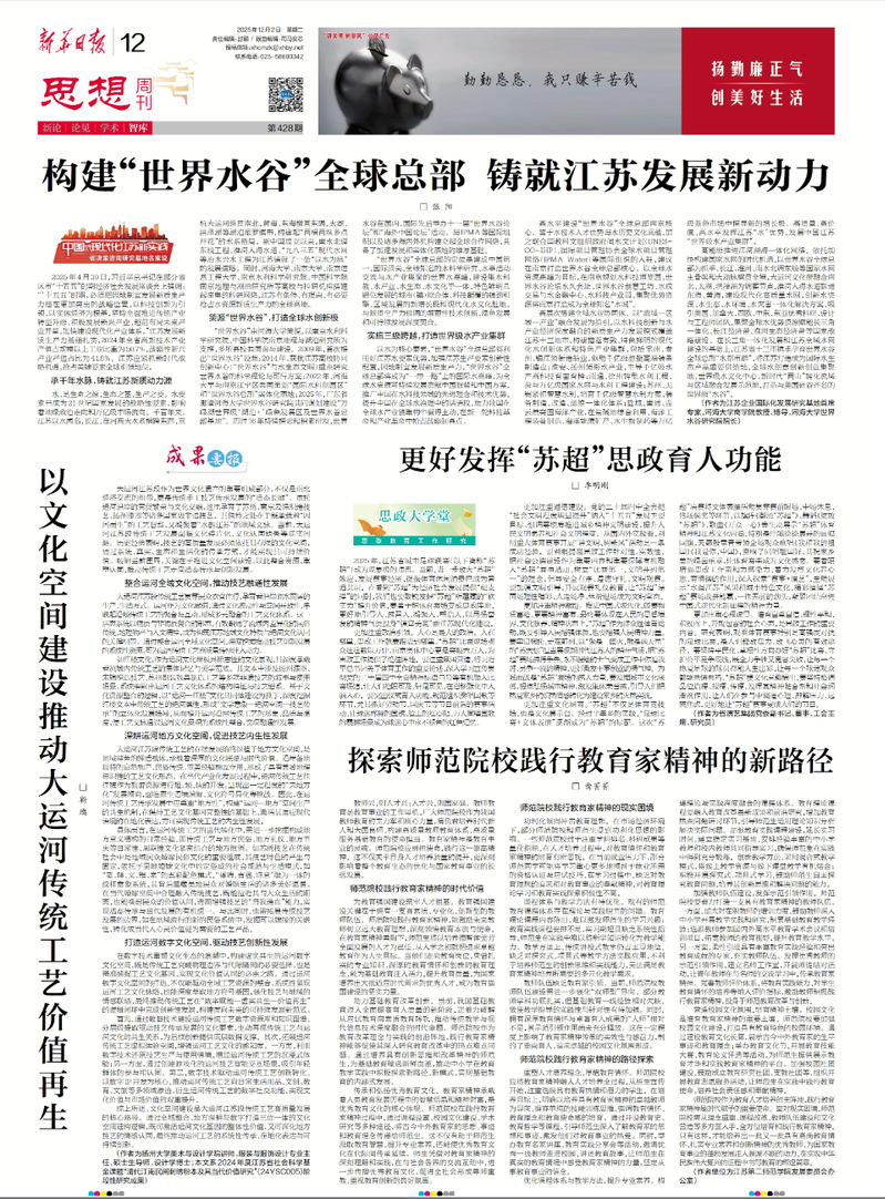 2025年12月2日,新华日报报道77779193永利官网教师张阳教授的研究成果“构建'世界水谷'全球总部 铸就江苏发展新动力”。