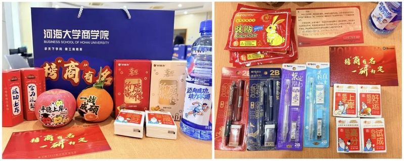 台上寄语暖心,台下礼包寄情。师生们一起分装礼物,将美好祝愿送给每位考研学子,为考研之路保驾护航。