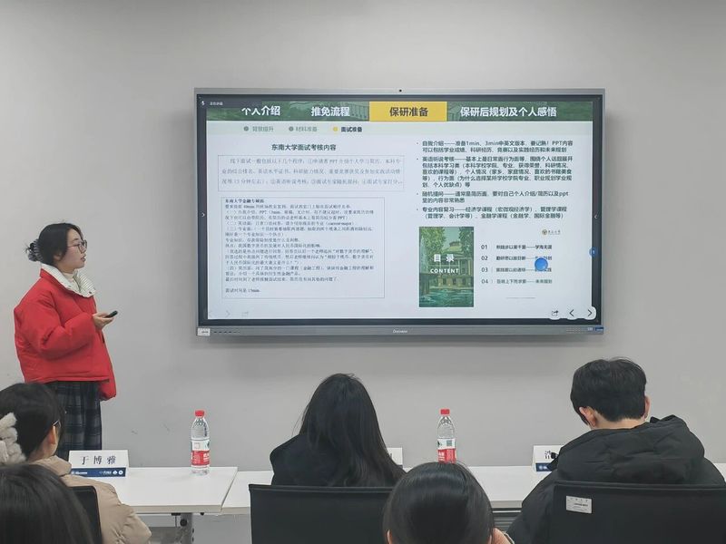 浩铭、于博雅、卢玥、雷舒、叶勇5位同学围绕推免院校选择、推免准备、推免流程、推免信息获取途径、推免后的大四生活等方面进行了详尽细致地分享,助力同学们深入了解推免政策,掌握高效的准备方法,做出科学合理的选择。