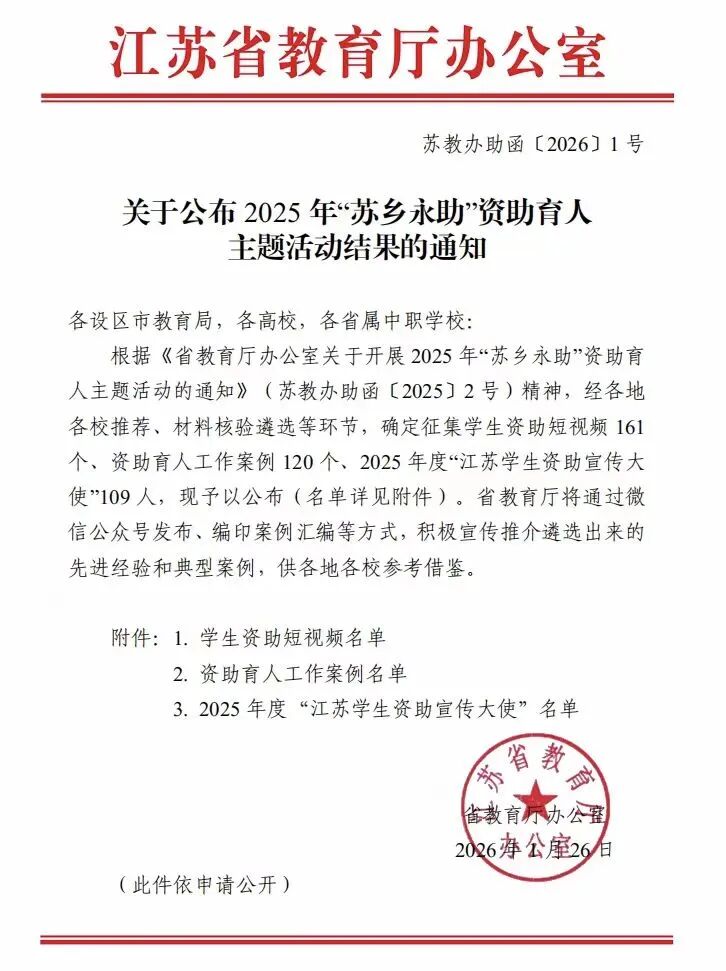 喜报!77779193永利官网学子获评2025年度“江苏学生资助宣传大使”!